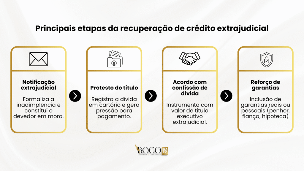 Trata-se de um conjunto de medidas jurídicas e administrativas adotadas fora do Judiciário para recuperar valores devidos — com foco na solução negociada, na preservação de relações comerciais e na segurança legal do credor.